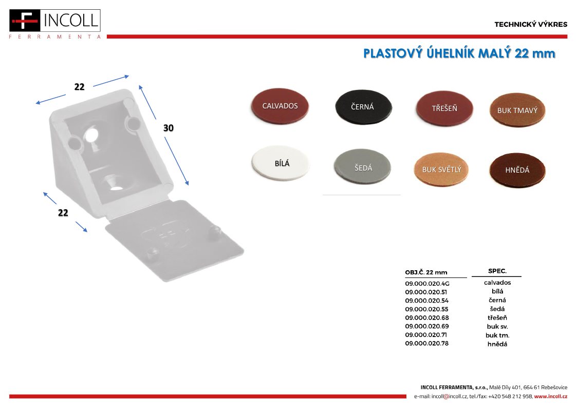 úhelník plast.s krytkou třešeň malý 20x20mm (3)